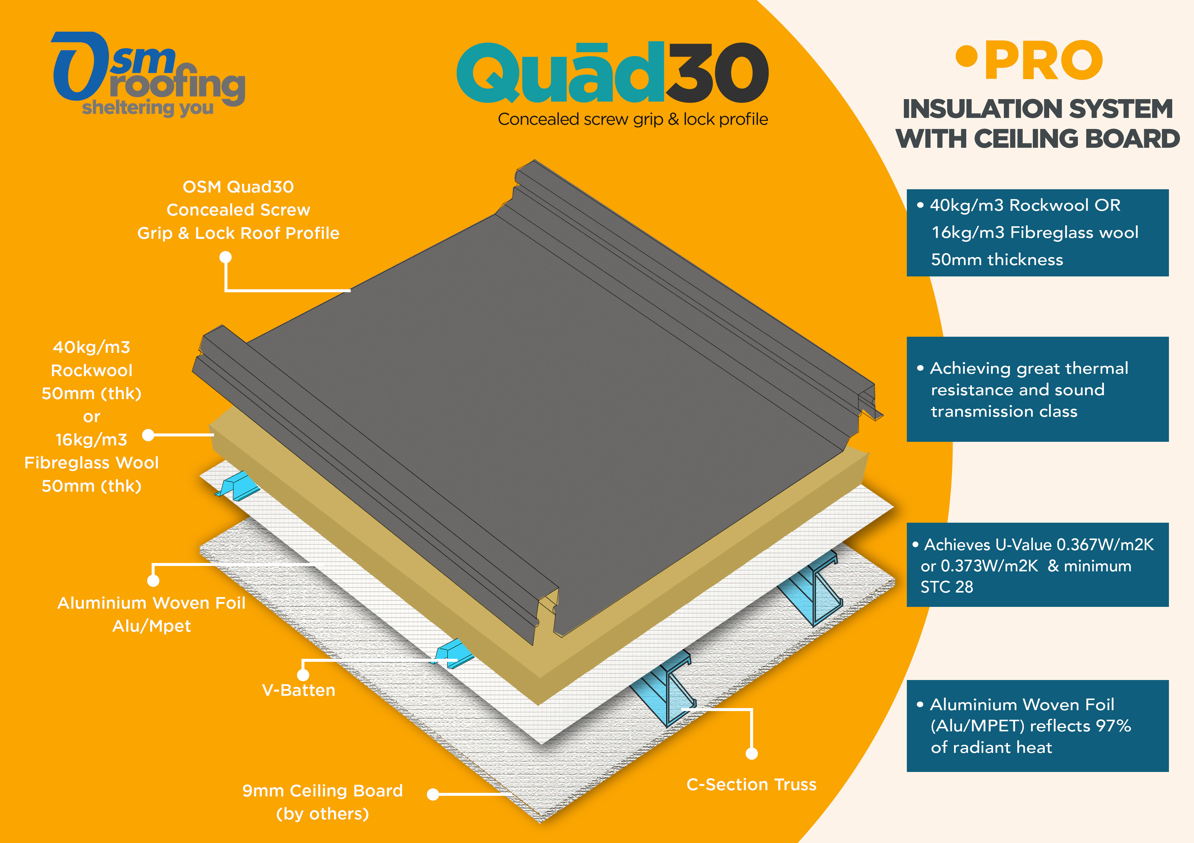Engineered for precision and performance, Quad30™ redefines modern roofing with its minimalist yet powerful design. Featuring two upright ribs standing 30mm tall, this system incorporates OSM’s innovative Grip-and-Lock technology — a concealed fastener mechanism that ensures a clean architectural finish and superior watertightness.